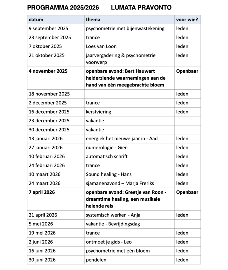 • Openbare avond verzorgt door Gertien van der Gracht op 11 maart 2025